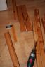 Das Wunder heist Stichsäge, mit der kann man die balken rechtwinklig schneiden. Flott neue Löcher für die Ikea-Verbinder gebohrt und schon ist das Hochbett runtergeholt.